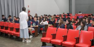 Alunos do 9º ano tiveram um bate-papo com a empreendedora Karina Schoubeck