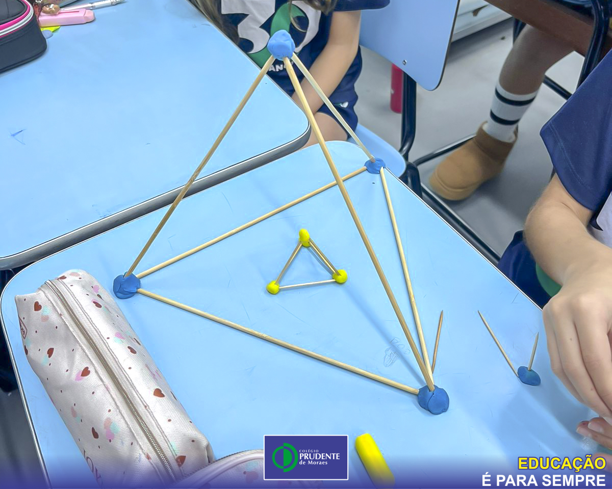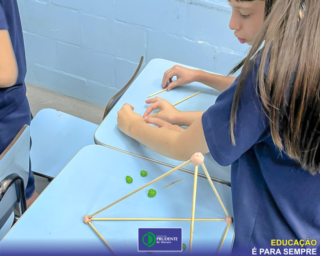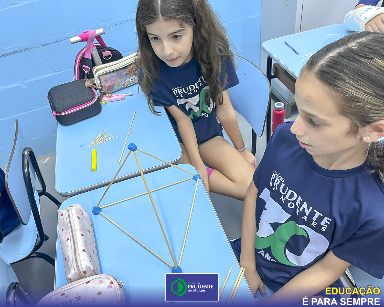 Usando palitos e massinha, os alunos do 4º ano construíram formas e aprenderam na prática a diferença entre: