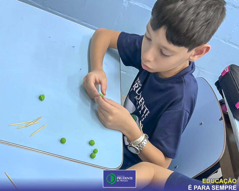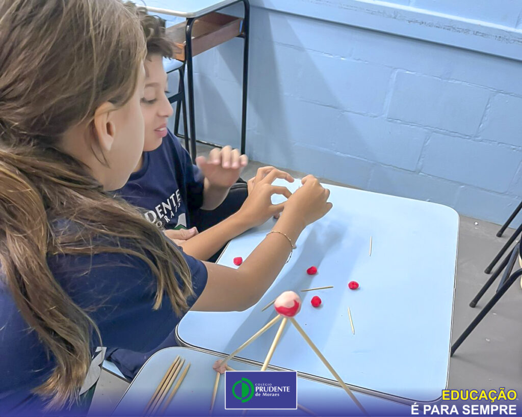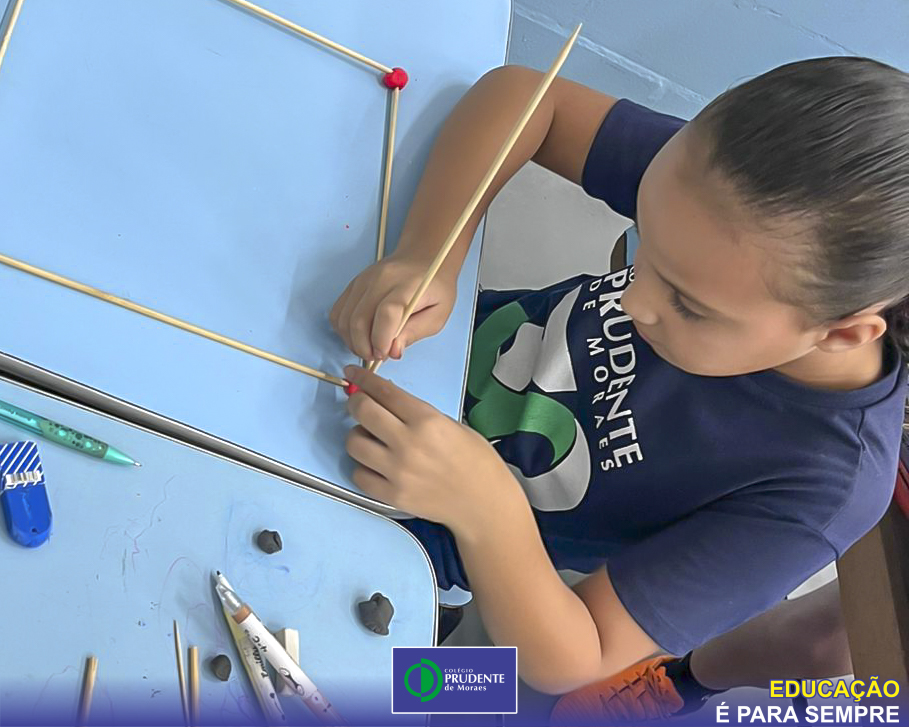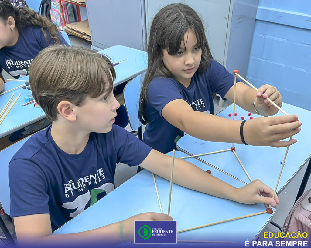 Usando palitos e massinha, os alunos do 4º ano construíram formas e aprenderam na prática a diferença entre: